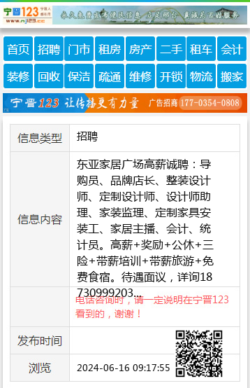 东亚家居广场高薪诚聘:导购员、品牌店长、整装设计师、定制设计师、设计师助理、家装监理、定制家具安装工、家居主播、会计、统计员。高薪+奖励+公休+三险+带薪培训+带薪旅游+免费食宿。待遇面议,详询18730999203 【电话咨询时,请一定说明在宁晋123看到的,谢谢!】 |