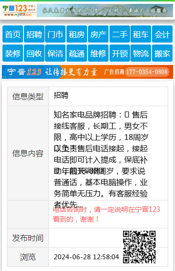 知名家电品牌招聘:✅ 售后接线客服,长期工,男女不限,高中以上学历,18周岁以上!