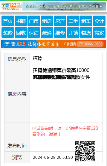 | 防骗提醒: | 宁晋123(www.nj123.cc)提醒您:手工活、网络兼职、刷单,都是骗子!凡以各种名义收取费用的都是骗子!找工作是往兜里挣钱,让你往外掏钱的都是骗子!异地招聘请提高警惕,谨防诈骗! |
