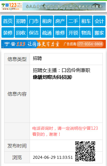 招聘女主播:口齿伶俐兼职全职均可 地址:方大科技园 电话19565616330