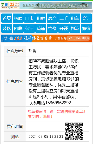 招聘不露脸游戏主播,暑假工勿扰,要求年龄18/30岁有工作经验者优先专业直播房间,顶级配置电脑1对1的专业运营团队,优秀主播可 设有主播独立房间每天直播4-是8 小时,具体看游戏,联系电话15369962892 【电话咨询时,请一定说明在宁晋123看到的,谢谢!】 |