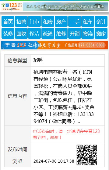 招聘电商客服若干名(长期有经验)公司环境优雅,氛围轻松,在岗人员全部00后,满满的青春活力,早中晚三班倒,包吃包住,住所在小区、工资底薪+提成+奖金不等!!咨询电话:13313394074(微信同号) 【电话咨询时,请一定说明在宁晋123看到的,谢谢!】 |