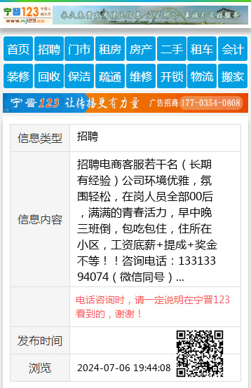招聘电商客服若干名(长期有经验)公司环境优雅,氛围轻松,在岗人员全部00后,满满的青春活力,早中晚三班倒,包吃包住,住所在小区,工资底薪+提成+奖金不等!!咨询电话:13313394074(微信同号) 【电话咨询时,请一定说明在宁晋123看到的,谢谢!】 |