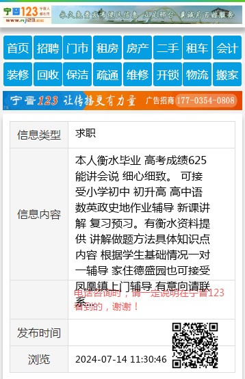 本人衡水毕业 高考成绩625 能讲会说 细心细致。 可接受小学初中 初升高 高中语数英政史地作业辅导 新课讲解 复习预习。有衡水资料提供 讲解做题方法具体知识点内容 根据学生基础情况一对一辅导 家住德盛园也可接受凤凰镇上门辅导 有意向请联系15226811032 【电话咨询时,请一定说明在宁晋123看到的,谢谢!】 |