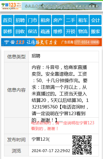 | 防骗提醒: | 宁晋123(www.nj123.cc)提醒您:手工活、网络兼职、刷单,都是骗子!凡以各种名义收取费用的都是骗子!找工作是往兜里挣钱,让你往外掏钱的都是骗子!异地招聘请提高警惕,谨防诈骗! |