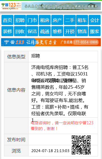 济南电缆库房招聘:普工5名、司机3名,工资电议15031941667仅限电话联系。