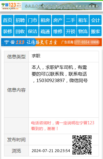 本人,求职铲车司机,有需要的可以联系我,联系电话,15030923897,微信同号