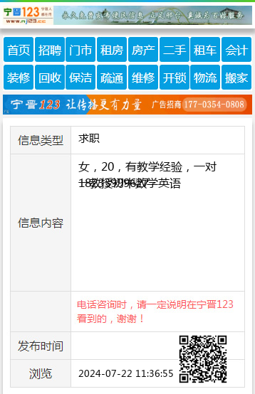 女,20,有教学经验,一对一教授初中数学英语 18233999627