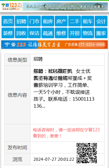 | 防骗提醒: | 宁晋123(www.nj123.cc)提醒您:手工活、网络兼职、刷单,都是骗子!凡以各种名义收取费用的都是骗子!找工作是往兜里挣钱,让你往外掏钱的都是骗子!异地招聘请提高警惕,谨防诈骗! |