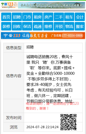 诚聘电话销售20名,春风十里 我只‘聘’你.万事俱备‘职’等你来。底薪+提成+奖金+全勤综合5000-10000 不等(多劳多得上不封顶),要求28-40周岁,女士优先考虑,有无经验均可,长白班,做六休一,定期团建,节假日部分带薪休息。地址:老车站正泰大厦,联系电话:15612978963 【电话咨询时,请一定说明在宁晋123看到的,谢谢!】 |