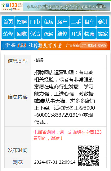 .主要从事天猫、拼多多店铺上下架、活动报名工资3000-600015833729191恒基现代城 【电话咨询时,请一定说明在宁晋123看到的,谢谢!】 |