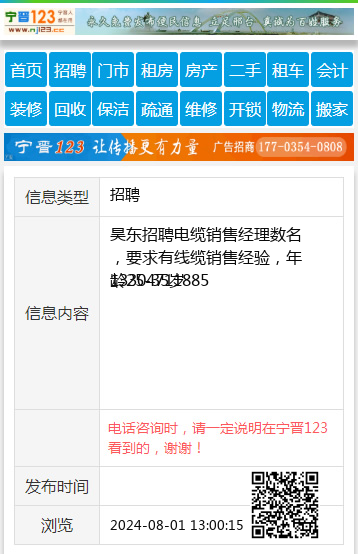 昊东招聘电缆销售经理数名,要求有线缆销售经验,年龄25-35岁 13304711885