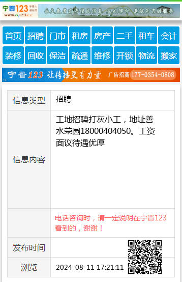 免责声明:本栏目信息由网友自行发布,宁晋123不承担任何责任!提高警惕,谨防诈骗!做推广、做信息置顶!请加宁晋123客服微信:ningjin009