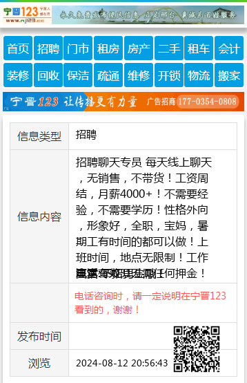 招聘聊天专员 每天线上聊天,无销售,不带货!工资周结,月薪4000+!不需要经验,不需要学历!性格外向,形象好,全职,宝妈,暑期工有时间的都可以做!上班时间,地点无限制!工作真实有效,无需任何押金!