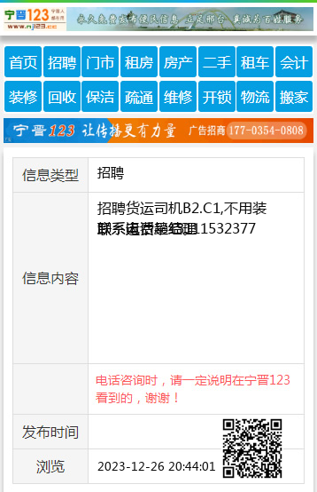 免责声明:本栏目信息由网友自行发布,宁晋123不承担任何责任!提高警惕,谨防诈骗!做推广、做信息置顶!请加宁晋123客服微信:ningjin009
