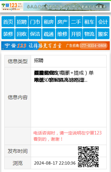 | 防骗提醒: | 宁晋123(www.nj123.cc)提醒您:手工活、网络兼职、刷单,都是骗子!凡以各种名义收取费用的都是骗子!找工作是往兜里挣钱,让你往外掏钱的都是骗子!异地招聘请提高警惕,谨防诈骗! |