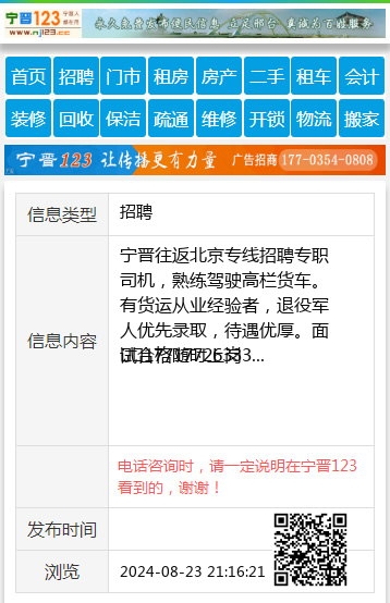 宁晋往返北京专线招聘专职司机,熟练驾驶高栏货车。有货运从业经验者,退役军人优先录取,待遇优厚。面试合格随时上岗