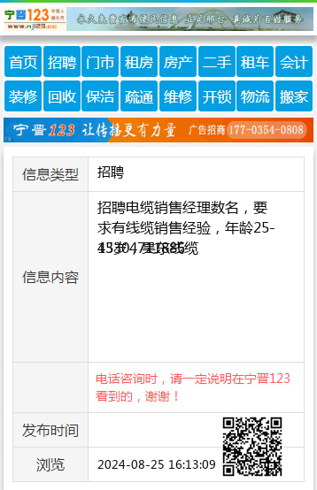 招聘电缆销售经理数名,要求有线缆销售经验,年龄25-45岁,昊东线缆 13304711885