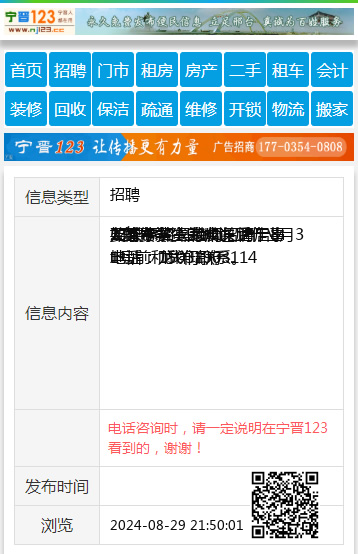 | 防骗提醒: | 宁晋123(www.nj123.cc)提醒您:手工活、网络兼职、刷单,都是骗子!凡以各种名义收取费用的都是骗子!找工作是往兜里挣钱,让你往外掏钱的都是骗子!异地招聘请提高警惕,谨防诈骗! |
