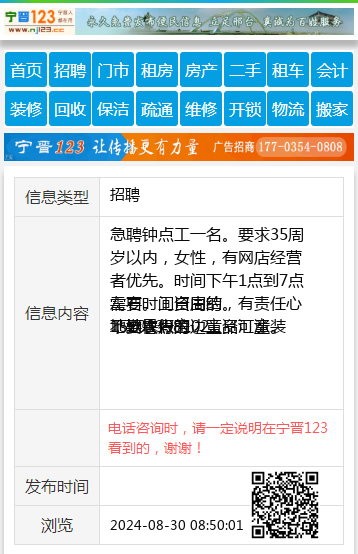 | 防骗提醒: | 宁晋123(www.nj123.cc)提醒您:手工活、网络兼职、刷单,都是骗子!凡以各种名义收取费用的都是骗子!找工作是往兜里挣钱,让你往外掏钱的都是骗子!异地招聘请提高警惕,谨防诈骗! |