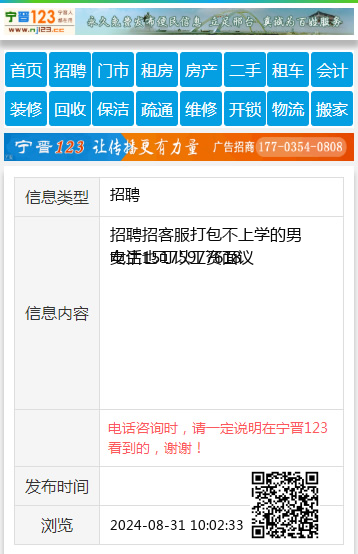 免责声明:本栏目信息由网友自行发布,宁晋123不承担任何责任!提高警惕,谨防诈骗!做推广、做信息置顶!请加宁晋123客服微信:ningjin009