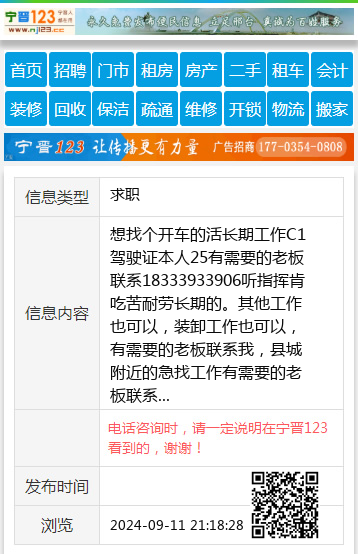 想找个开车的活长期工作C1驾驶证本人25有需要的老板联系18333933906听指挥肯吃苦耐劳长期的。其他工作也可以,装卸工作也可以,有需要的老板联系我,县城附近的急找工作有需要的老板联系 【电话咨询时,请一定说明在宁晋123看到的,谢谢!】 |