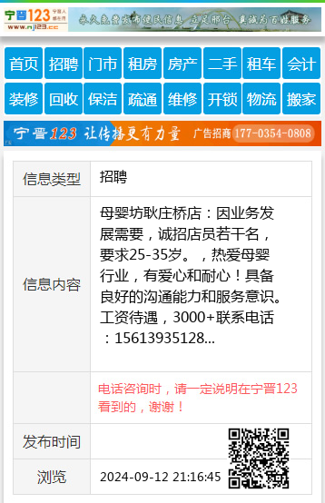 母婴坊耿庄桥店:因业务发展需要,诚招店员若干名,要求25-35岁。,热爱母婴行业,有爱心和耐心!具备良好的沟通能力和服务意识。工资待遇,3000+联系电话:15613935128 【电话咨询时,请一定说明在宁晋123看到的,谢谢!】 |