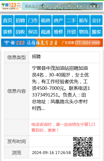 宁晋县中茂加油站招聘加油员4名,30-40周岁,女士优先,有工作经验者优先,工资4500-7000元。联系电话13373491251。负责人:田总地址:凤凰路北头小枣村村西 【电话咨询时,请一定说明在宁晋123看到的,谢谢!】 |