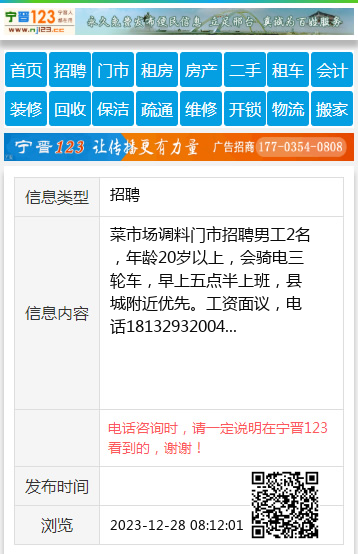 电话咨询时,请一定说明在宁晋123看到的,谢谢!