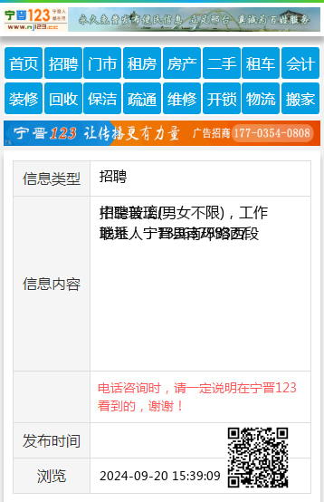 电话咨询时,请一定说明在宁晋123看到的,谢谢!