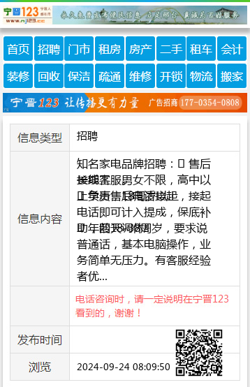 | 防骗提醒: | 宁晋123(www.nj123.cc)提醒您:手工活、网络兼职、刷单,都是骗子!凡以各种名义收取费用的都是骗子!找工作是往兜里挣钱,让你往外掏钱的都是骗子!异地招聘请提高警惕,谨防诈骗! |