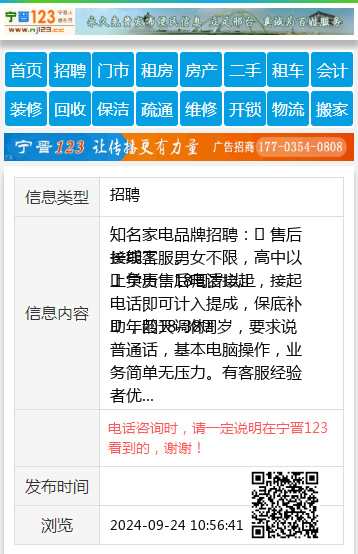 | 防骗提醒: | 宁晋123(www.nj123.cc)提醒您:手工活、网络兼职、刷单,都是骗子!凡以各种名义收取费用的都是骗子!找工作是往兜里挣钱,让你往外掏钱的都是骗子!异地招聘请提高警惕,谨防诈骗! |