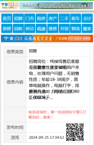 电话咨询时,请一定说明在宁晋123看到的,谢谢! |