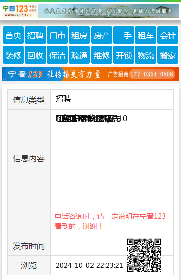 | 防骗提醒: | 宁晋123(www.nj123.cc)提醒您:手工活、网络兼职、刷单,都是骗子!凡以各种名义收取费用的都是骗子!找工作是往兜里挣钱,让你往外掏钱的都是骗子!异地招聘请提高警惕,谨防诈骗! |