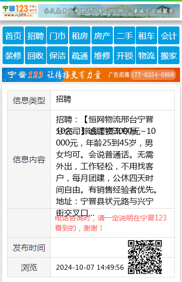 招聘:【恒网物流邢台宁晋分公司】诚聘物流专员