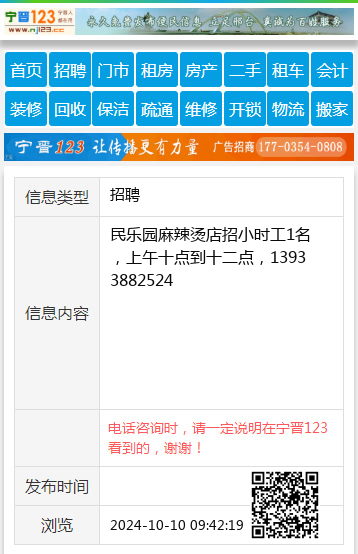 民乐园麻辣烫店招小时工1名,上午十点到十二点,13933882524
