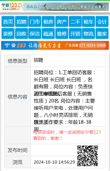 招聘岗位:1.工单回访客服:长白班 长白班 长白班 ,名额有限,岗位内容:负责快递工单回访。