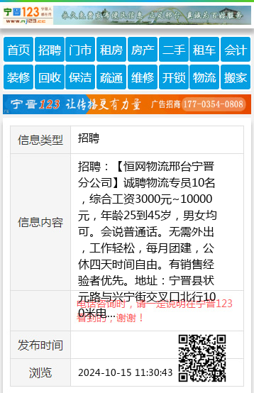 招聘:【恒网物流邢台宁晋分公司】诚聘物流专员