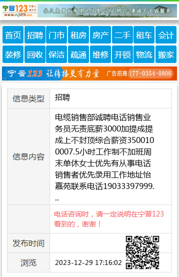 电缆销售部诚聘电话销售业务员无责底薪3000加提成提成上不封顶综合薪资3500100007.5小时工作制不加班周末单休女士优先有从事电话销售者优先录用工作地址怡嘉苑联系电话19033397999 【电话咨询时,请一定说明在宁晋123看到的,谢谢!】 |