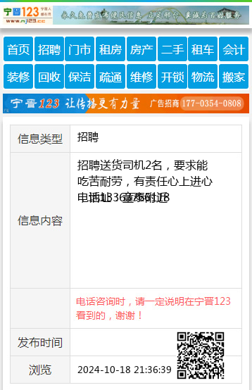 | 防骗提醒: | 宁晋123(www.nj123.cc)提醒您:手工活、网络兼职、刷单,都是骗子!凡以各种名义收取费用的都是骗子!找工作是往兜里挣钱,让你往外掏钱的都是骗子!异地招聘请提高警惕,谨防诈骗! |