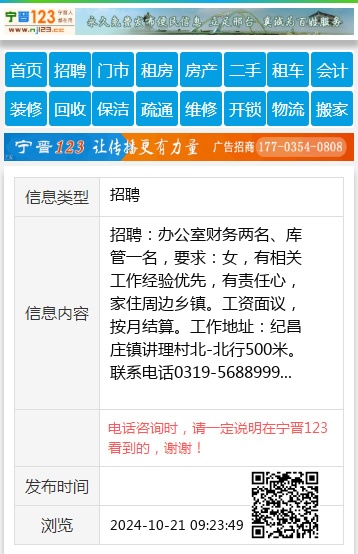免责声明:本栏目信息由网友自行发布,宁晋123不承担任何责任!提高警惕,谨防诈骗!做推广、做信息置顶!请加宁晋123客服微信:ningjin009