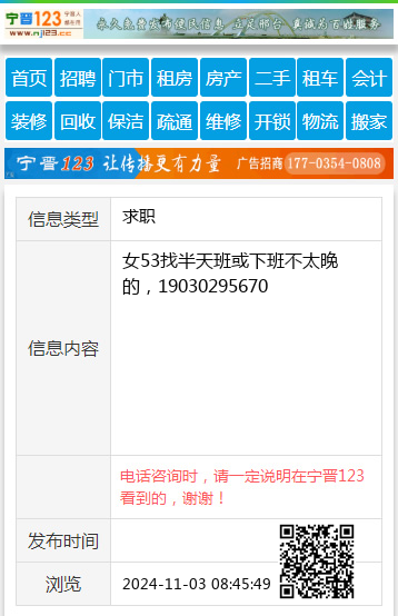 女53找半天班或下班不太晚的,19030295670