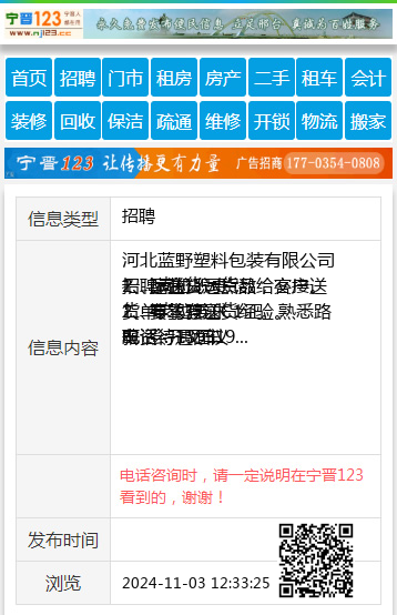 电话咨询时,请一定说明在宁晋123看到的,谢谢!