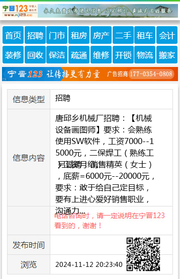 | 防骗提醒: | 宁晋123(www.nj123.cc)提醒您:手工活、网络兼职、刷单,都是骗子!凡以各种名义收取费用的都是骗子!找工作是往兜里挣钱,让你往外掏钱的都是骗子!异地招聘请提高警惕,谨防诈骗! |