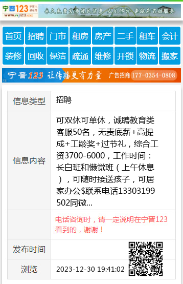 可双休可单休,诚聘教育类客服50名,无责底薪+高提成+工龄奖+过节礼,综合工资3700-6000,工作时间:长白班和懒觉班(上午休息),可随时接送孩子,可居家办公$联系电话13303199502同微 【电话咨询时,请一定说明在宁晋123看到的,谢谢!】 |