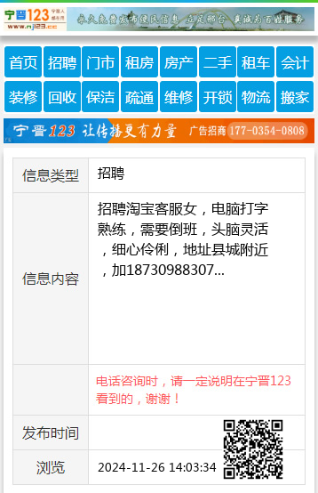 宁晋123(www.nj123.cc)提醒您:手工活、网络兼职、刷单,都是骗子!凡以各种名义收取费用的都是骗子!找工作是往兜里挣钱,让你往外掏钱的都是骗子!异地招聘请提高警惕,谨防诈骗!
