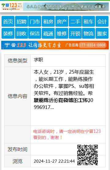 本人女,21岁,25年应届生,能长期工作,能熟练操作办公软件,掌握PS、su等相关软件。有过销售经验。希望能找一份在县城的工作。