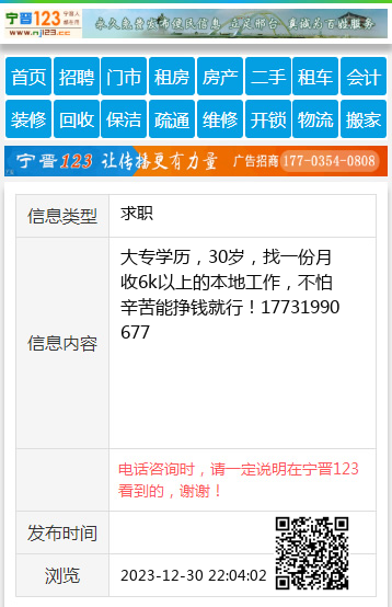 免责声明:本栏目信息由网友自行发布,宁晋123不承担任何责任!提高警惕,谨防诈骗!做推广、做信息置顶!请加宁晋123客服微信:ningjin009