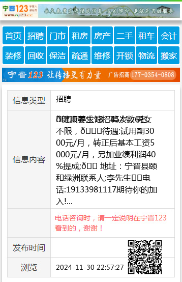 | 防骗提醒: | 宁晋123(www.nj123.cc)提醒您:手工活、网络兼职、刷单,都是骗子!凡以各种名义收取费用的都是骗子!找工作是往兜里挣钱,让你往外掏钱的都是骗子!异地招聘请提高警惕,谨防诈骗! |