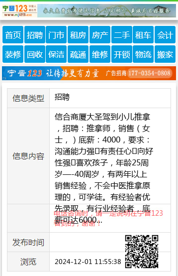 信合商厦大圣驾到小儿推拿,招聘:推拿师,销售(女士,)底薪:4000,要求:沟通能力强➕有责任心➕向好性强➕喜欢孩子,年龄25周岁—-40周岁,有两年以上销售经验,不会中医推拿原理的,可学徒。有经验者优先录取,有行业经验者,底薪可达6000+,联系电话:18714284394(微信同号) 【电话咨询时,请一定说明在宁晋123看到的,谢谢!】 |